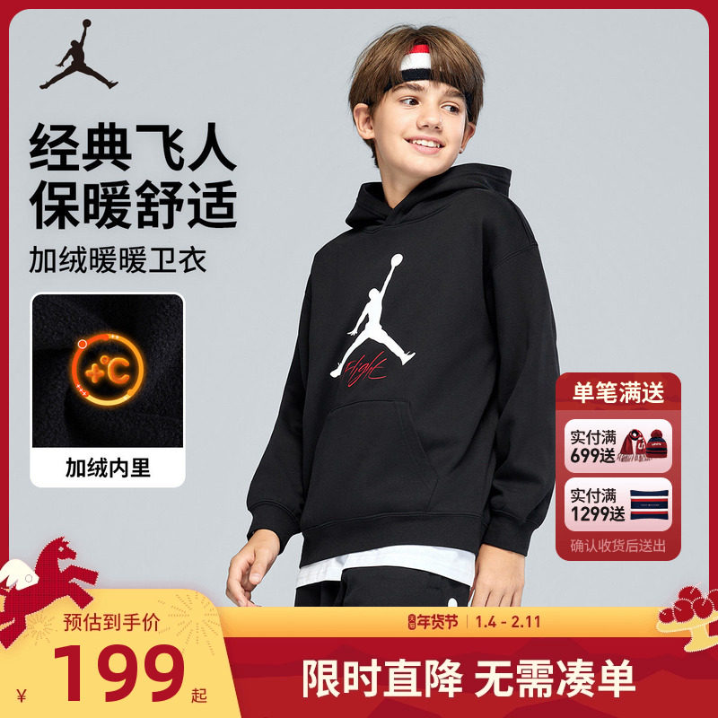Jordan儿童装男童连帽卫衣加绒2025秋冬新款中大童女童卫衣上衣潮