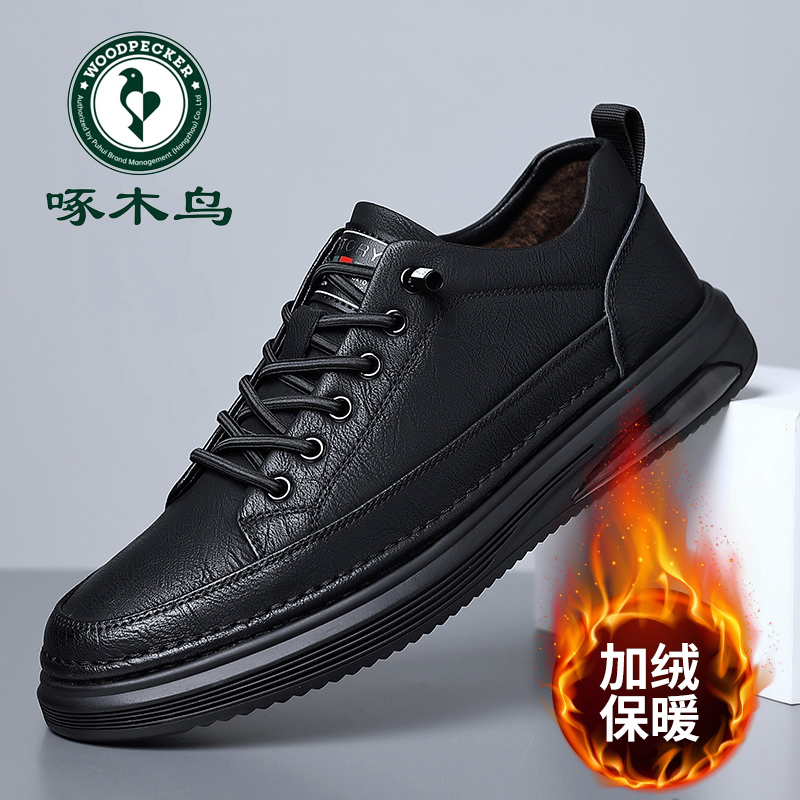 啄木鸟男鞋秋冬2023新款男士真皮加绒休闲皮鞋潮流百搭男运动板鞋