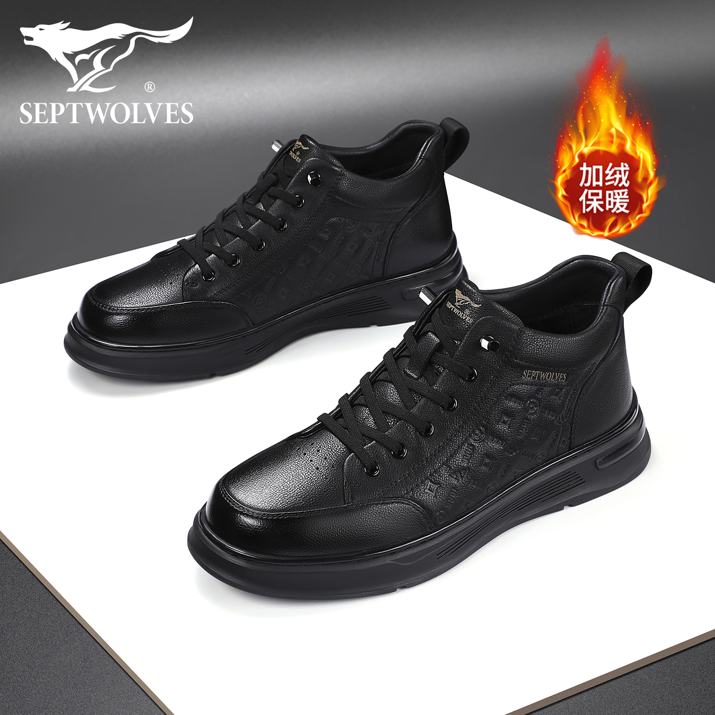 七匹狼男鞋2025冬季新款保暖加绒休闲皮鞋百搭厚底增高防寒板鞋男