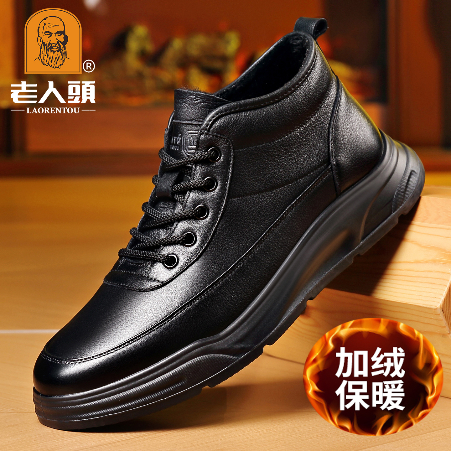 老人头男士高帮棉鞋冬季保暖加厚加绒休闲皮鞋男真皮头层牛皮男鞋