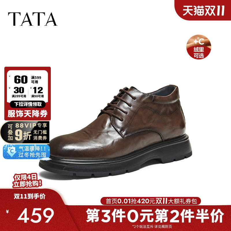 TATA他她男鞋加绒休闲皮鞋商务正装高帮真皮鞋2025冬新款QHE01DD5