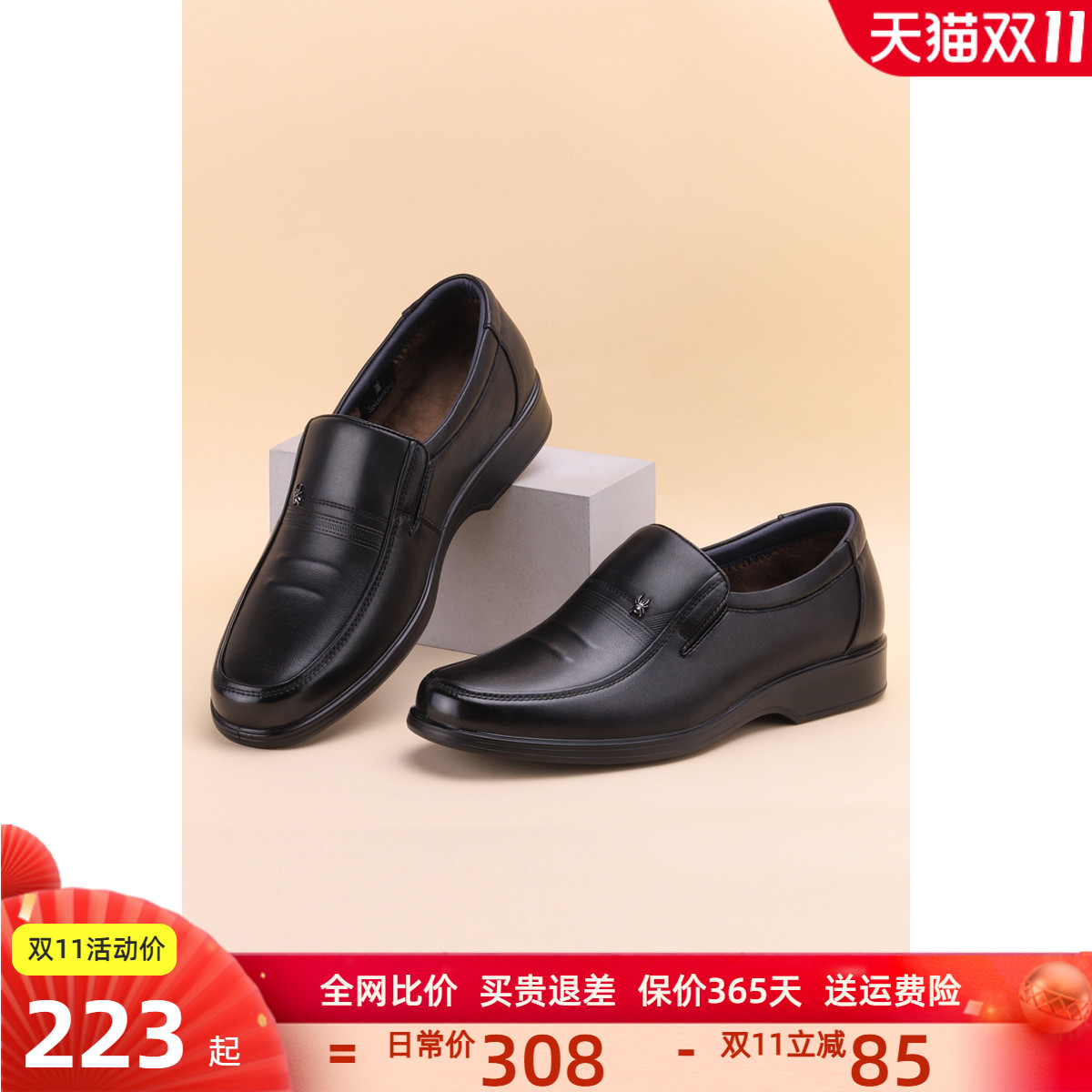老人头男鞋秋季皮鞋男士中年商务休闲皮鞋真皮加绒软底舒适爸爸鞋