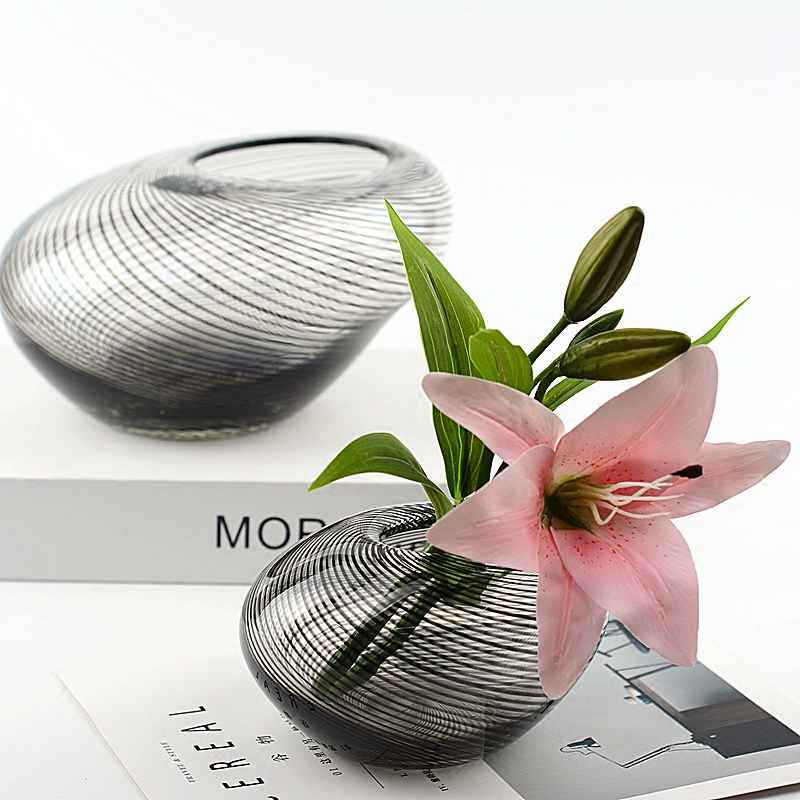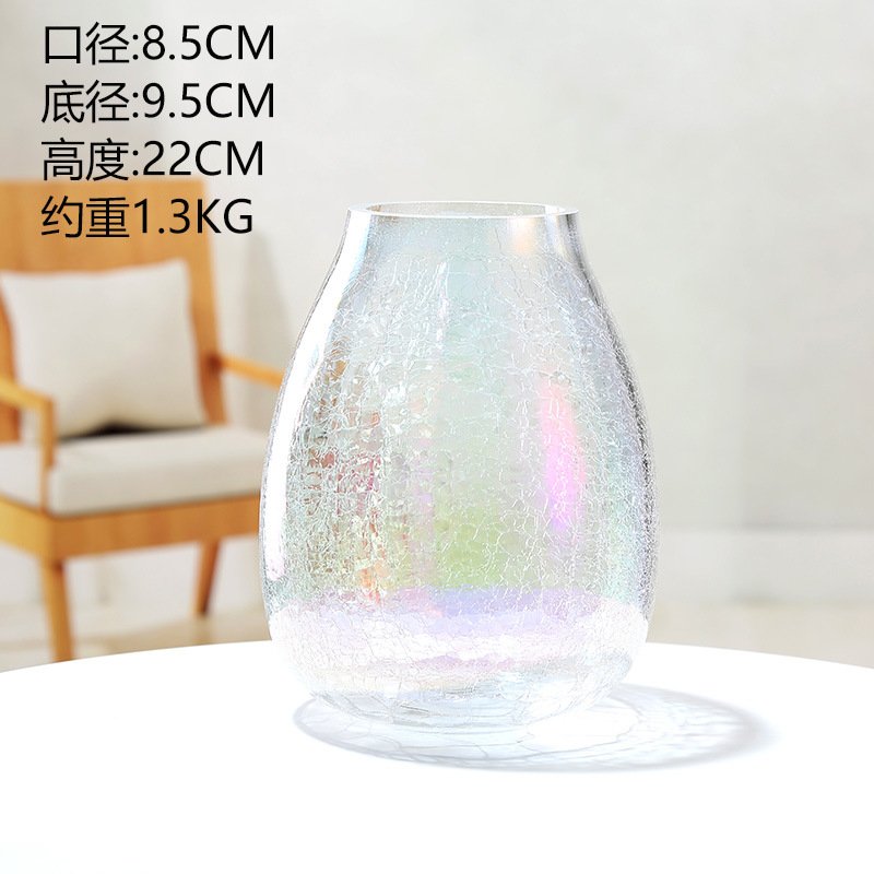 欧式轻奢裂纹冰花玻璃琉摆件光花家居装饰插花美式花瓶透明器居家