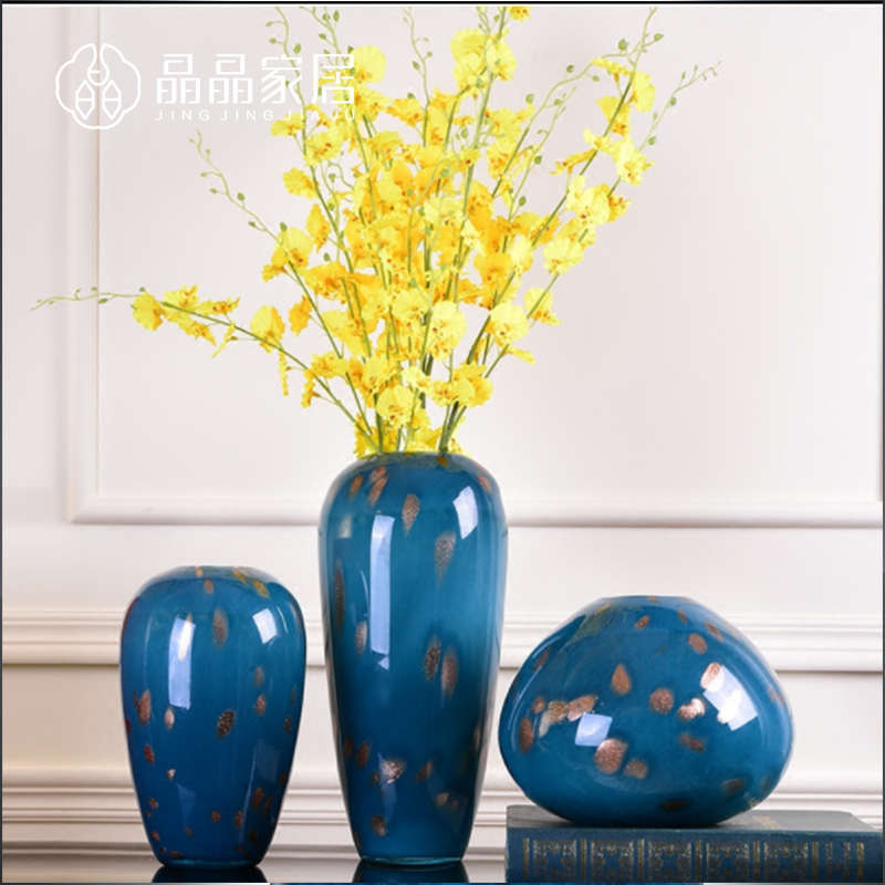 轻奢高级感蓝色磨刻美式花瓶摆件装饰器样板间会议室插花高级插花