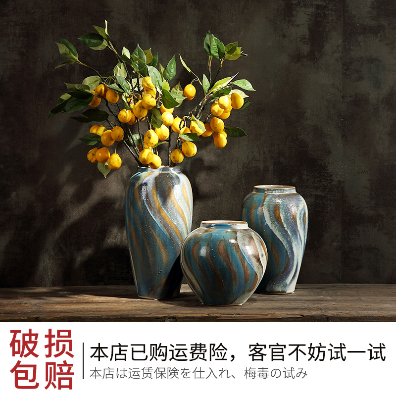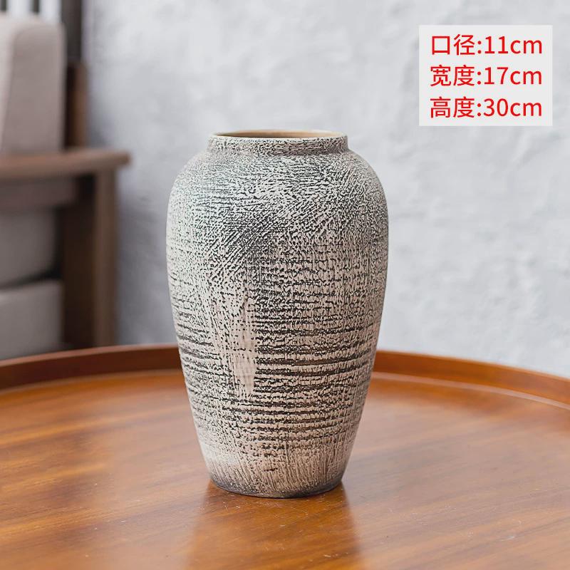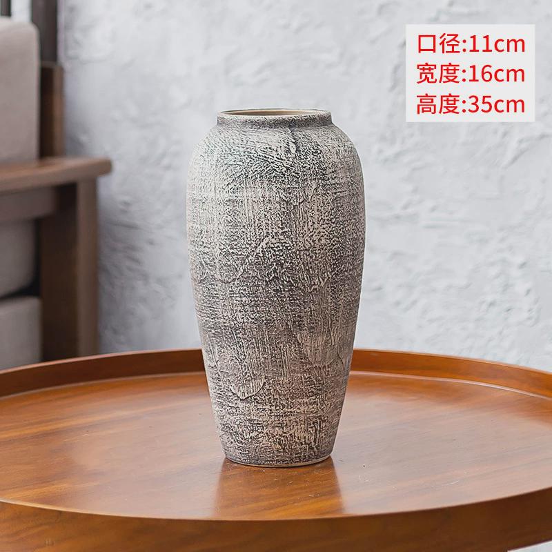 美式花瓶客厅插干花器酒店玄关家居陶瓷瓷器复古陶罐粗陶坛子摆件
