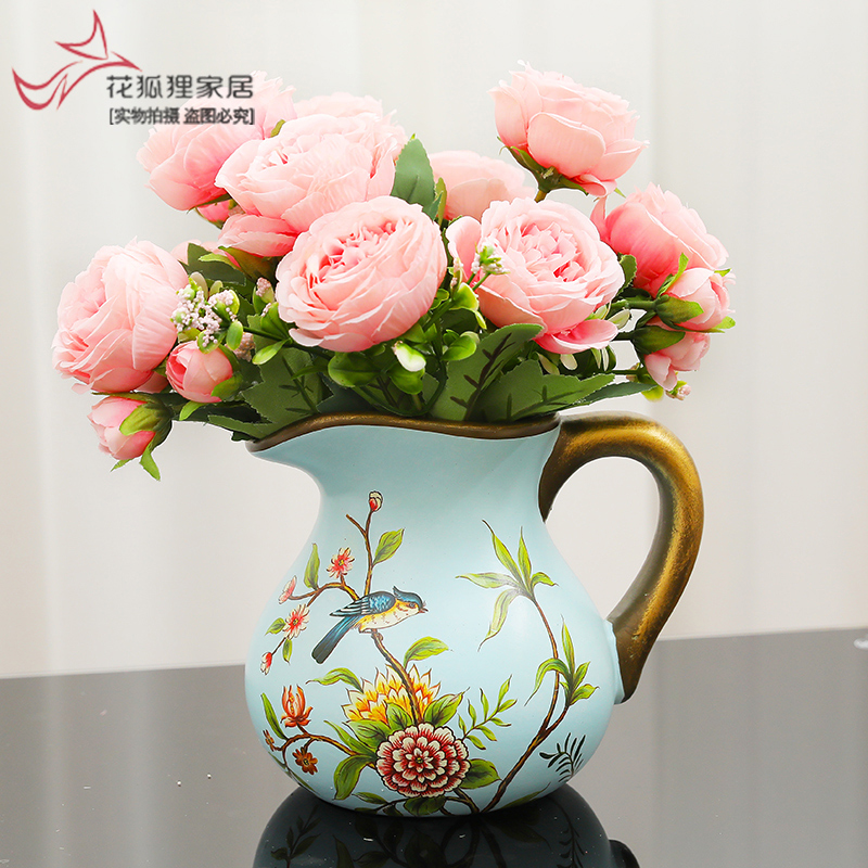 美式乡村冰裂奶壶陶瓷花瓶田园风水养插花摆件装饰品复古创意手提