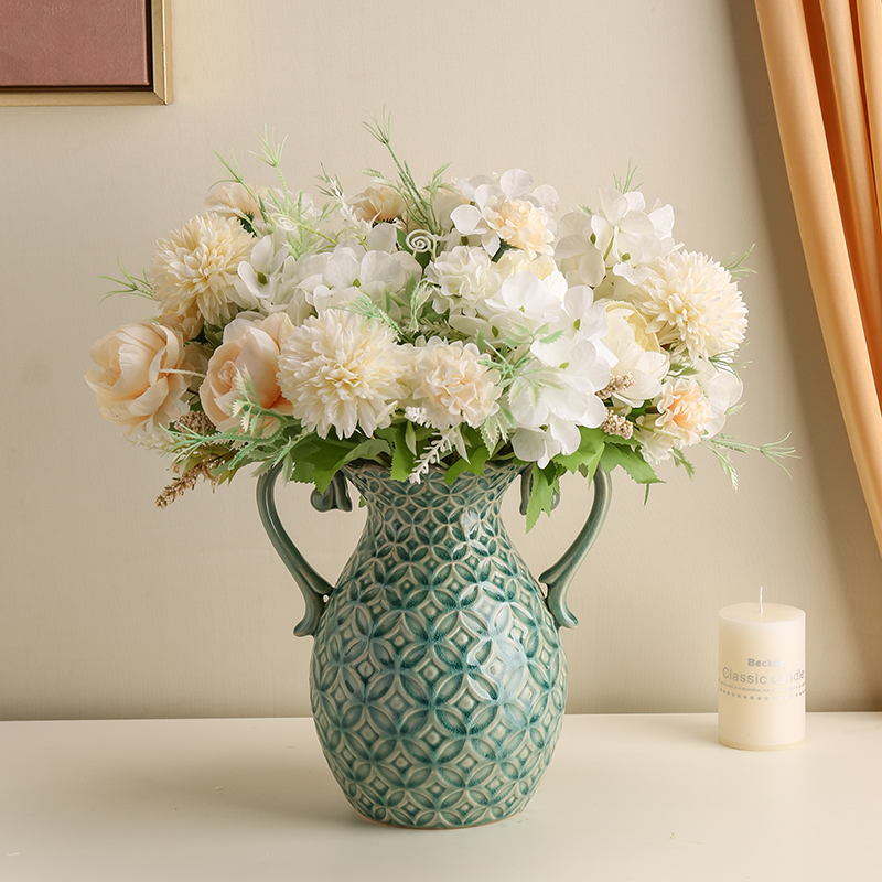 美式复古现代简约陶瓷花瓶奶油风高级感客厅餐桌插花绣球装饰摆件
