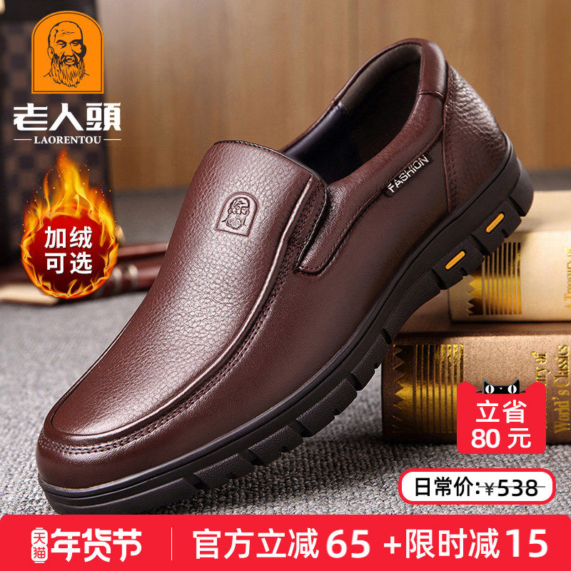 老人头皮鞋男牛皮冬季中老年爸爸鞋真皮加绒男士商务休闲大码男鞋