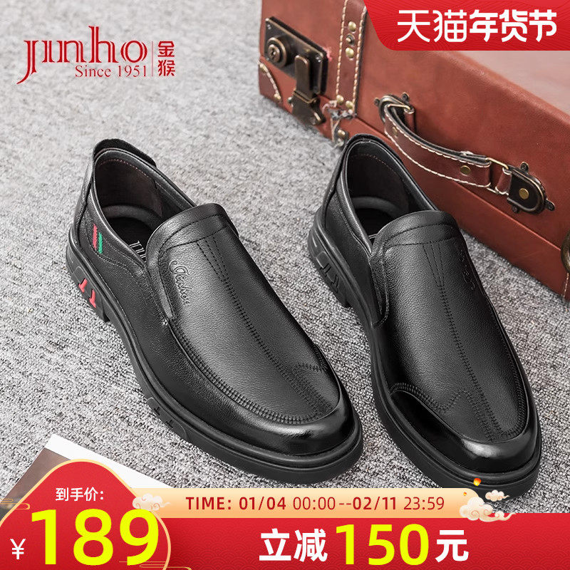 正品老人头男鞋厚底防滑爸爸鞋真皮商务休闲皮鞋秋季透气中年鞋子