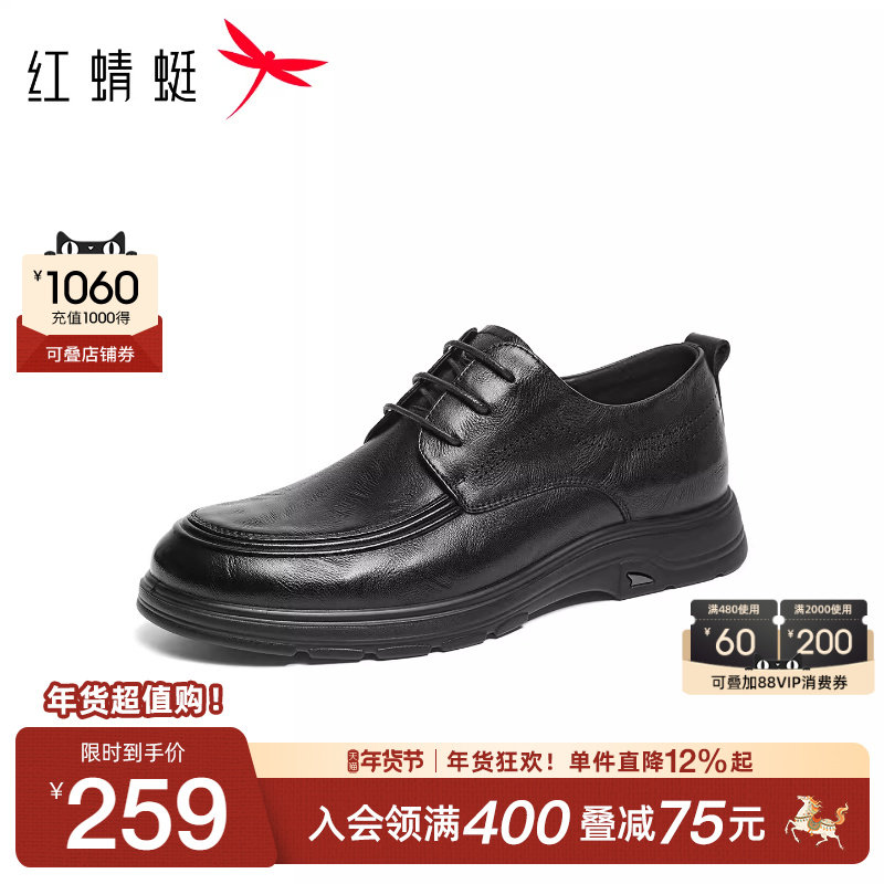 红蜻蜓休闲皮鞋男鞋2026春季新款商务男皮鞋系带爸爸鞋真皮舒适