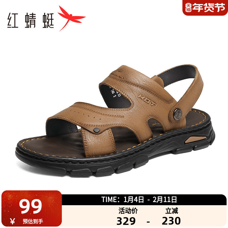 红蜻蜓沙滩凉鞋男士2024新款爸爸鞋真皮防滑中老年人凉拖两穿男鞋