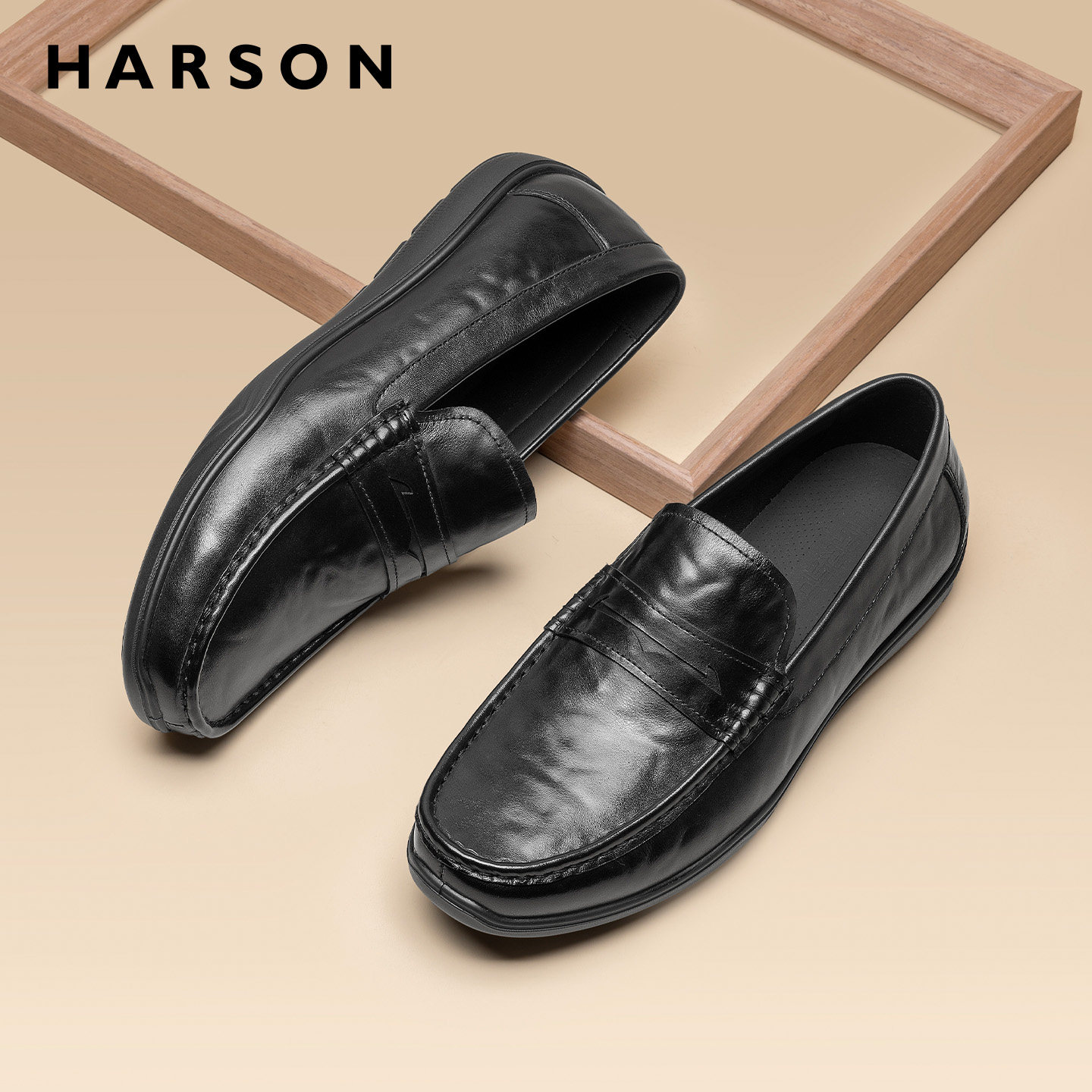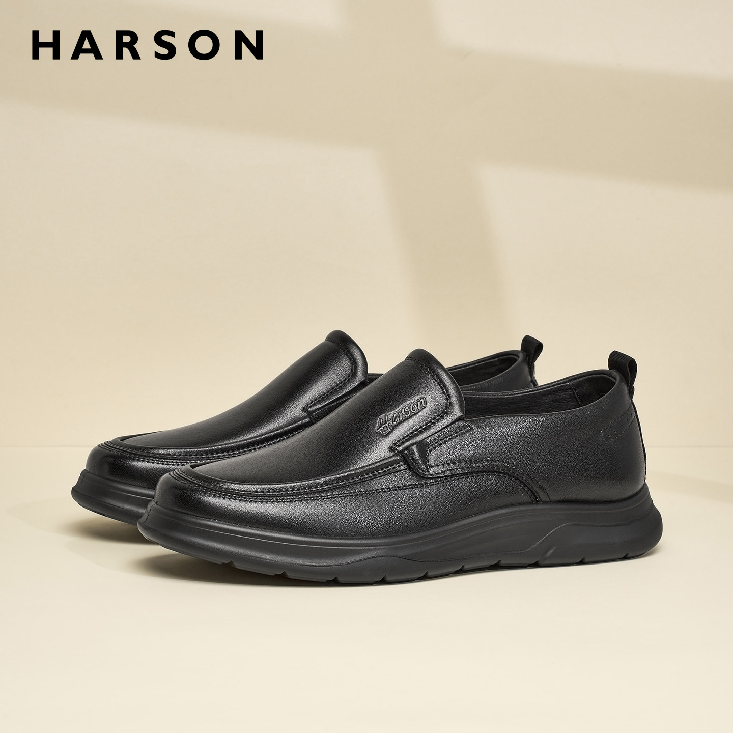 哈森男鞋秋季爸爸鞋真皮软底商务休闲皮鞋男士增高一脚蹬乐福鞋子