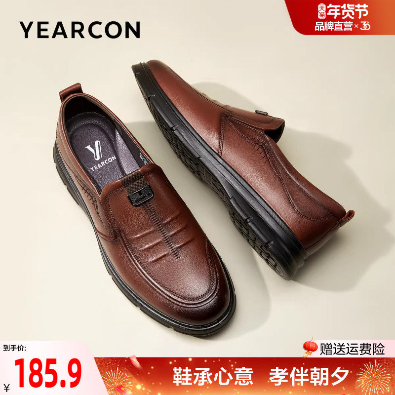 意尔康爸爸鞋真皮2025年新款舒适一脚蹬皮鞋男中老年男士软底男鞋