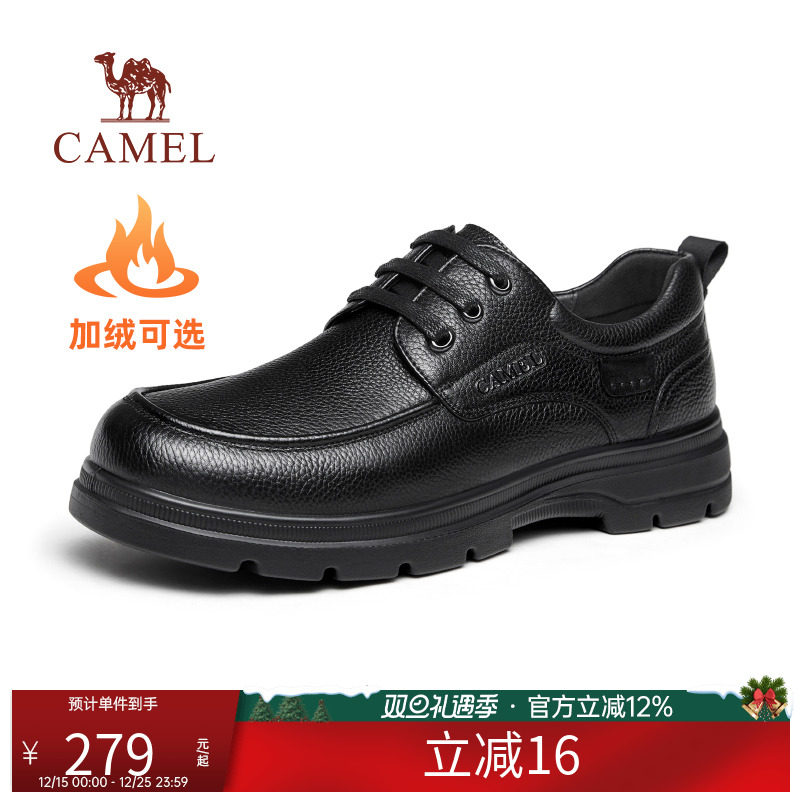 骆驼男鞋2025冬季新款商务休闲中年爸爸鞋真皮加绒棉鞋软底皮鞋男