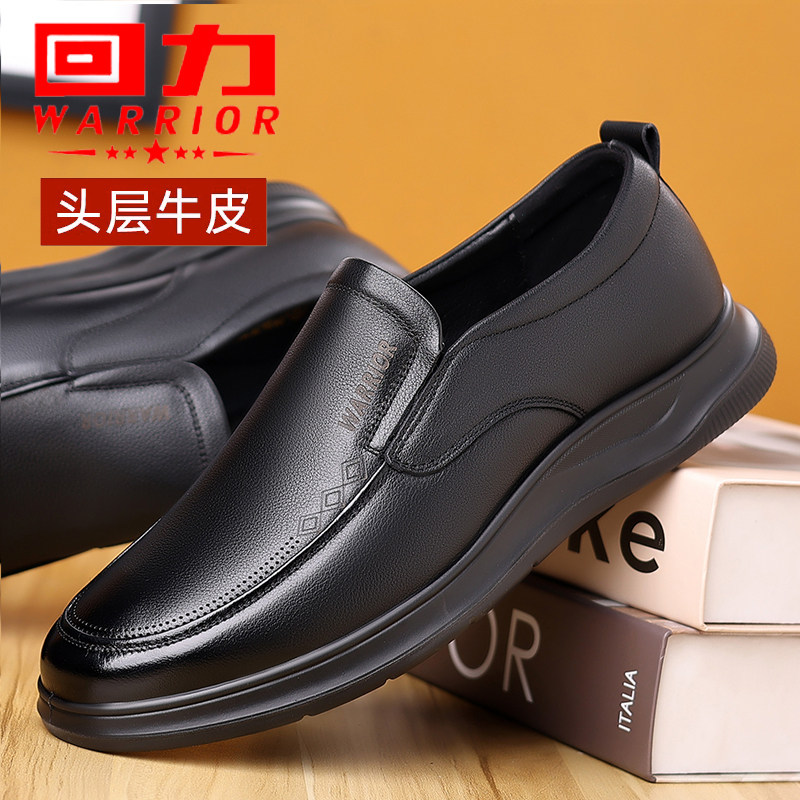 回力皮鞋男士爸爸鞋真皮软底舒适透气一脚蹬头层牛皮商务休闲皮鞋
