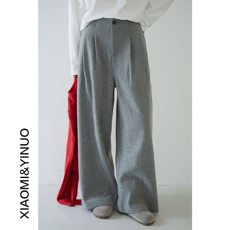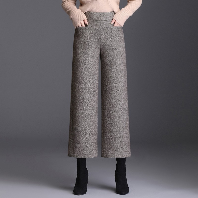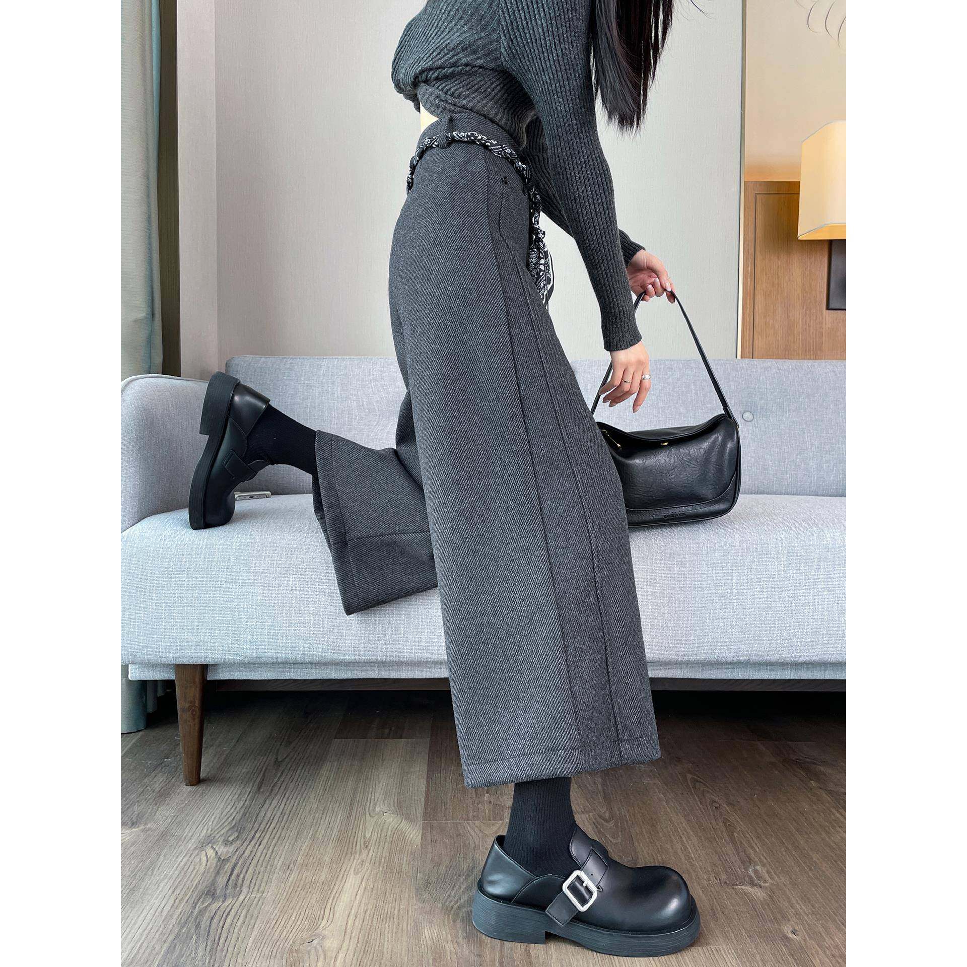 - 毛呢裤女秋冬九分阔腿