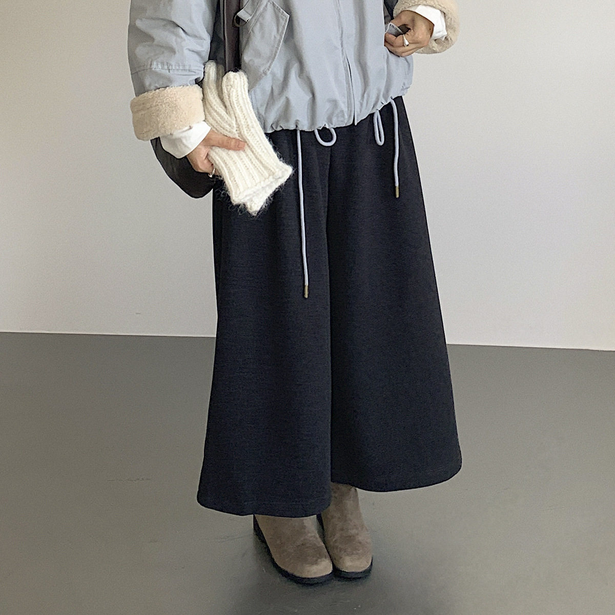 - 毛呢阔腿裤 九分裤