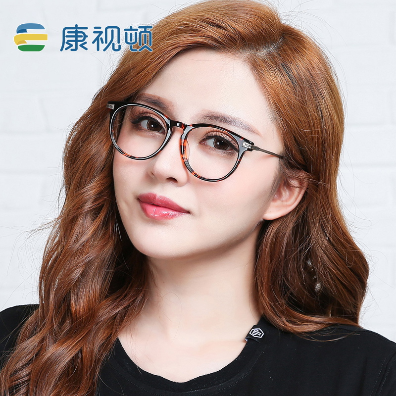 康视顿复古圆框眼镜架女大框大脸近视眼镜全框平光镜配眼镜W5054