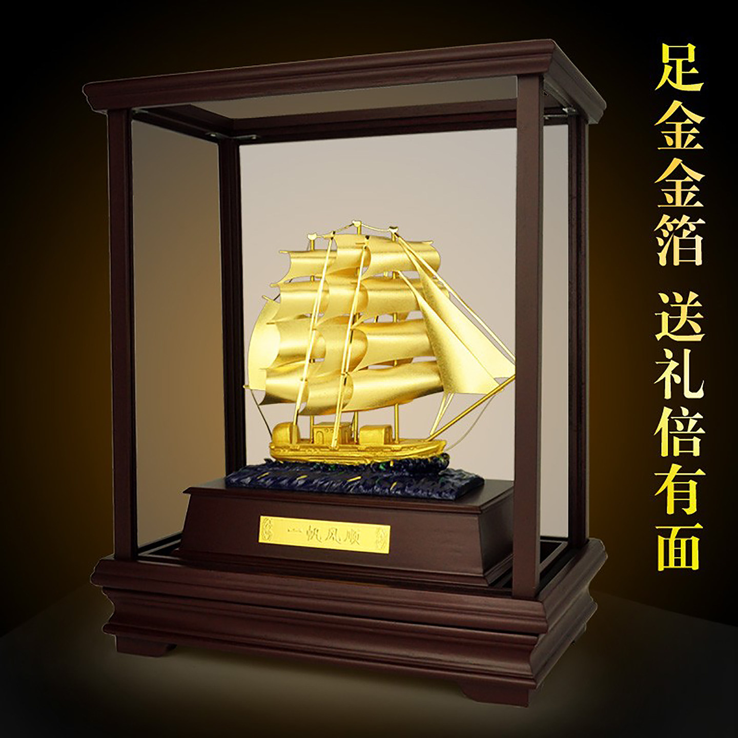 一帆风顺帆船摆件沙金工艺客厅办公室酒柜办公桌装饰开业乔迁礼品