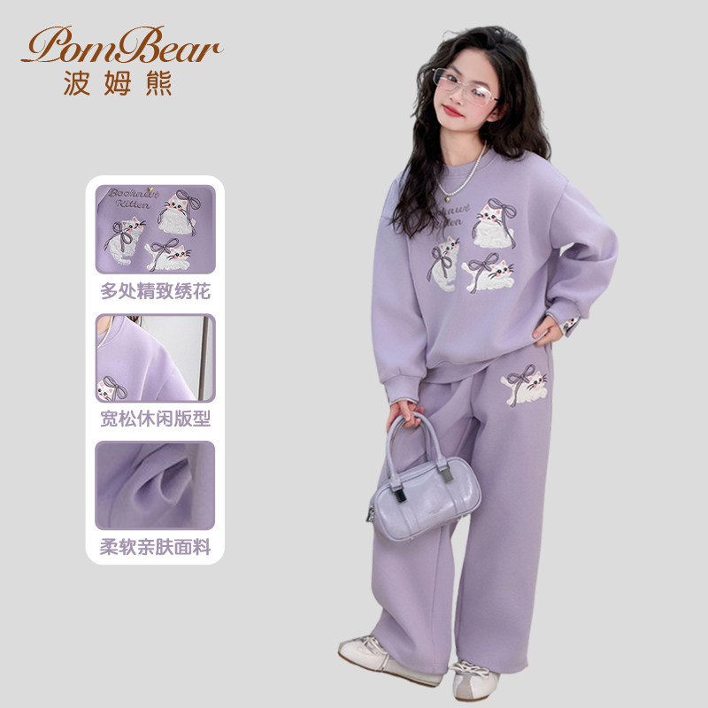 波姆熊女童卡通印花卫衣套装2026新款春季中大童休闲两件套洋气