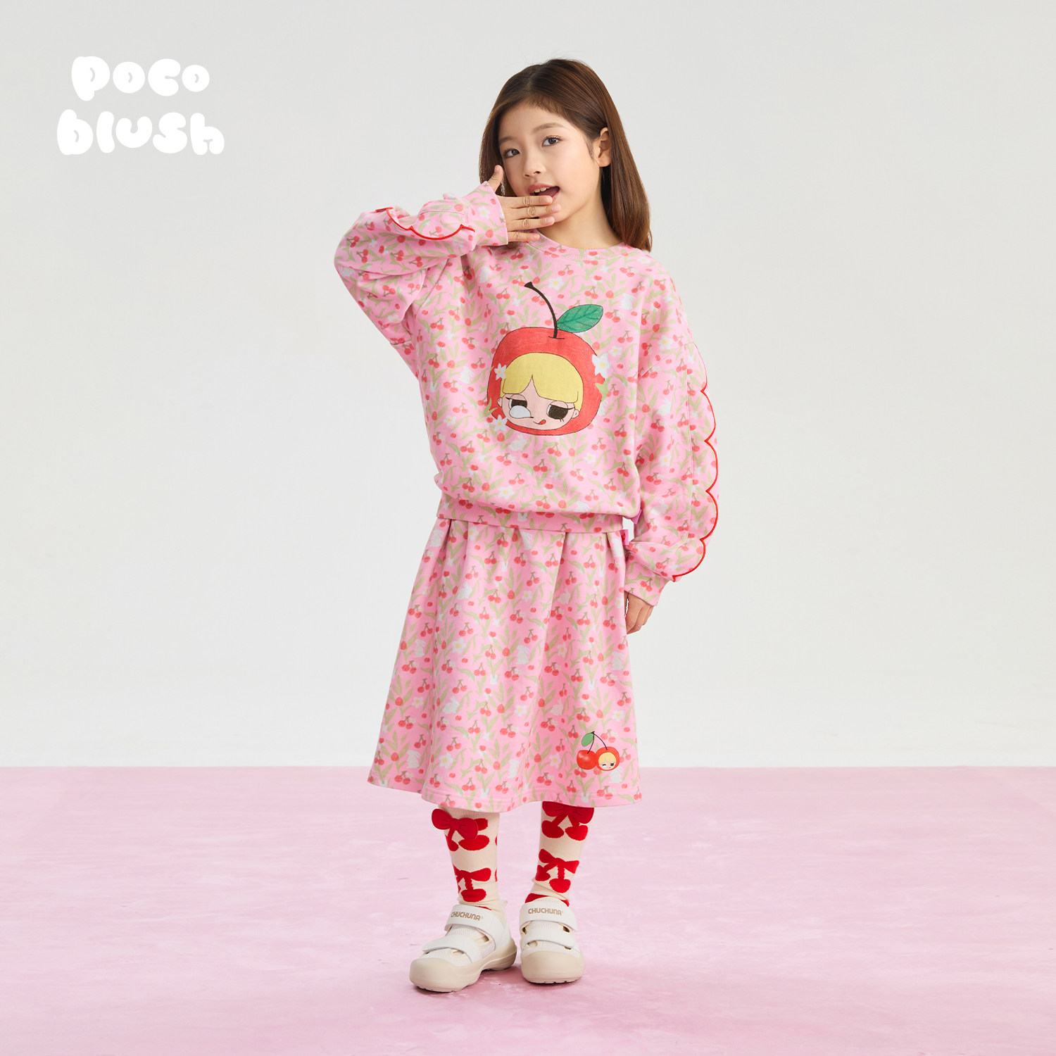 pocoblush【樱桃花海】印花卫衣套装春夏款女童波浪袖边上衣裤子