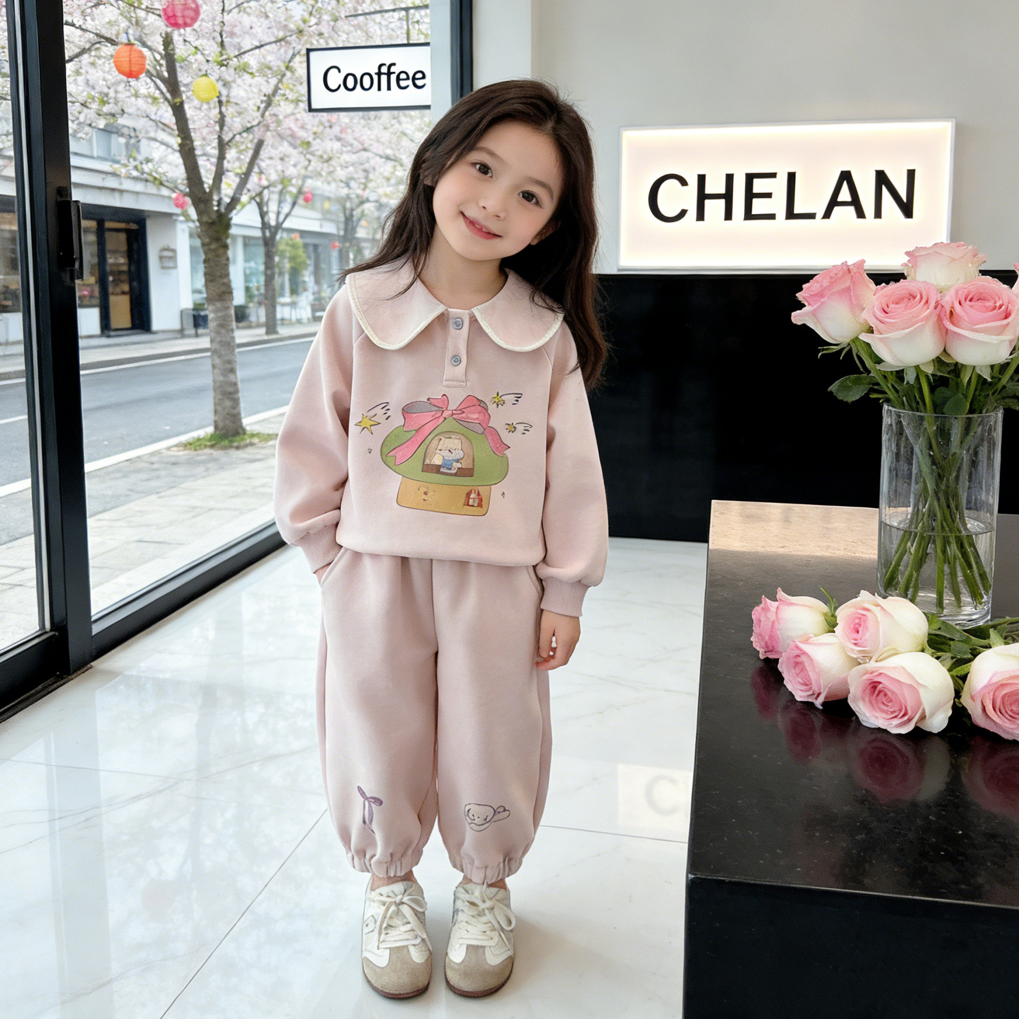 女童甜美卡通印花卫衣套装2026春季新款小女孩洋气休闲运动两件套