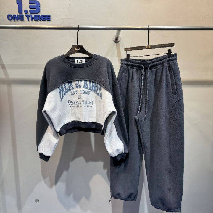 1.3韩国正品代购2025运动风字母印花卫衣套装女时尚休闲裤套装