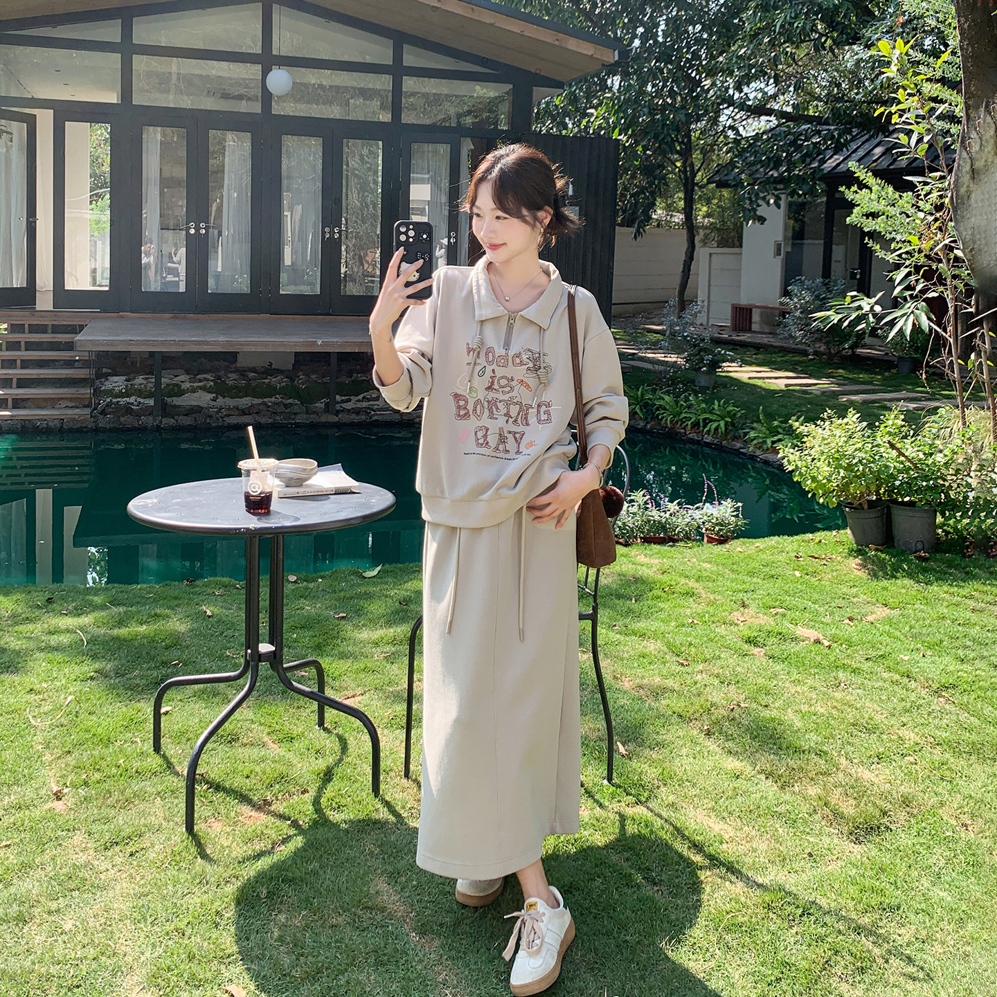 氛围感减龄卡其色印花卫衣套装女春季2026新款巨好看半身裙两件套