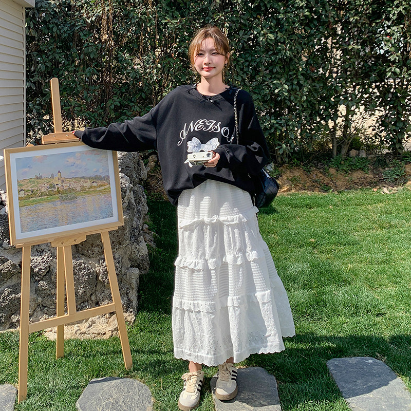 妖精的口袋原创印花卫衣半身裙两件套女2025冬季新款韩系一整套装
