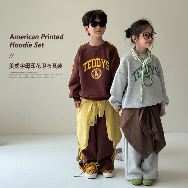女童美式字母印花卫衣套装春夏款2026新款儿童洋气休闲穿搭兄妹装