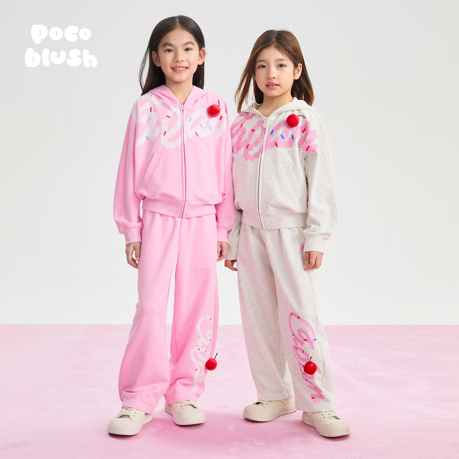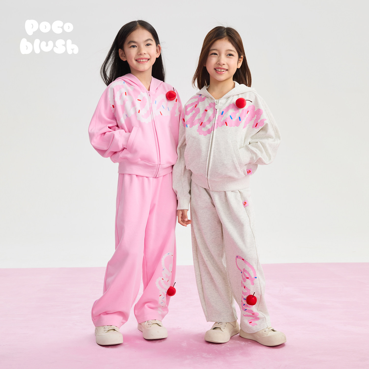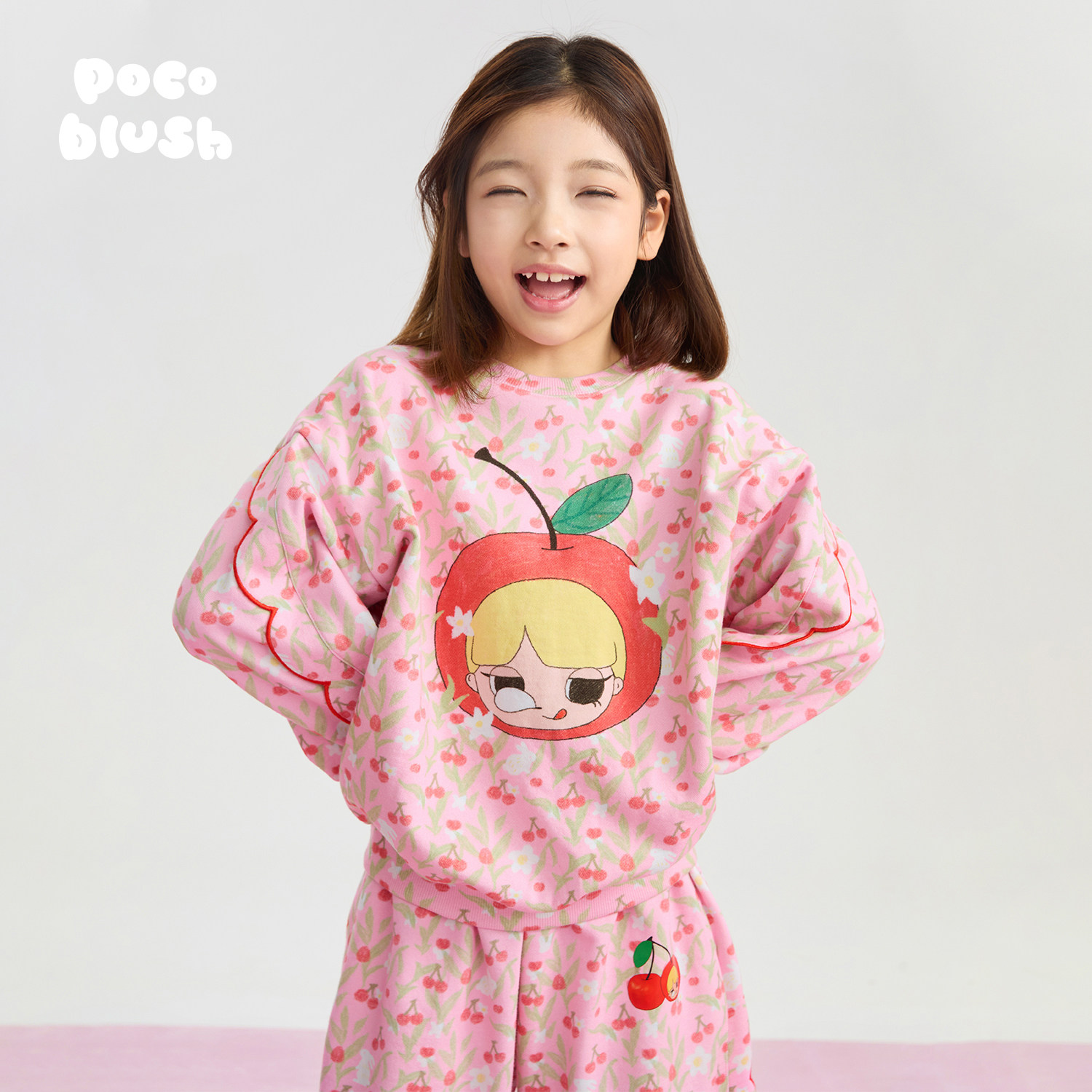 pocoblush【跳跃的奶油】立体樱桃印花卫衣套装春款女童长袖裤子