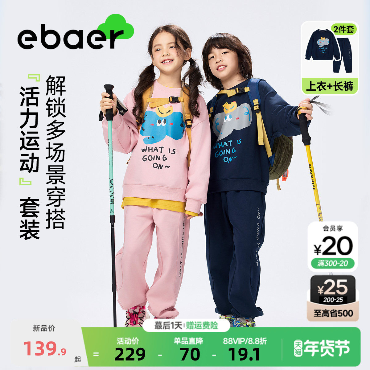 EBAER童装儿童抑菌印花卫衣套装2026春新款男女童运动休闲两件套