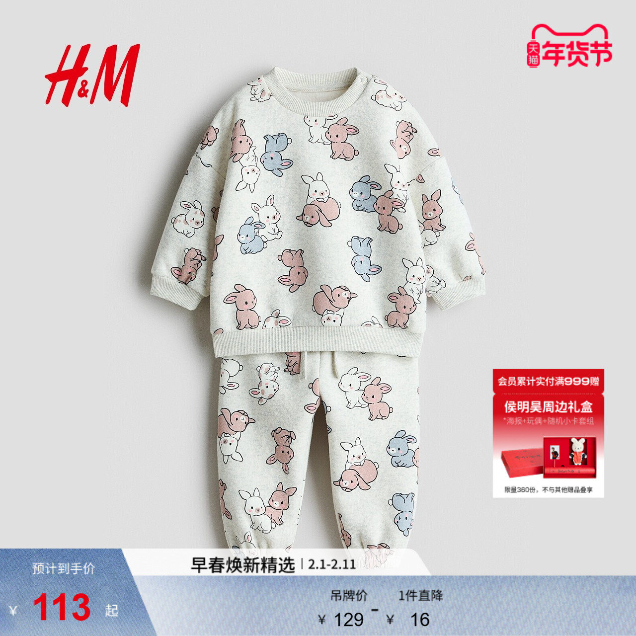 HM2026春季新款童装男婴2件式印花卫衣套装1314909