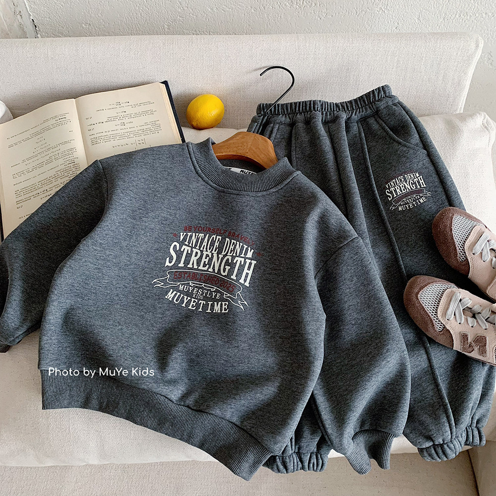 儿童2025新款韩版字母加厚印花卫衣套装男女童冬季宽松休闲两件套