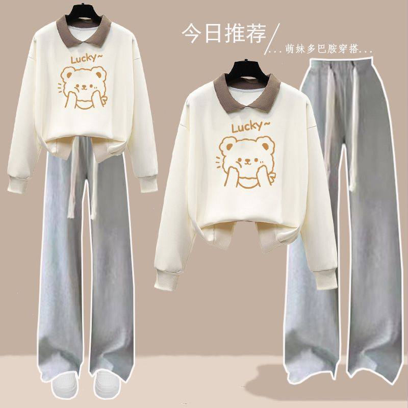 韩系慵懒新款卡通印花卫衣套装女宽松显瘦休闲阔腿裤加绒两件套潮