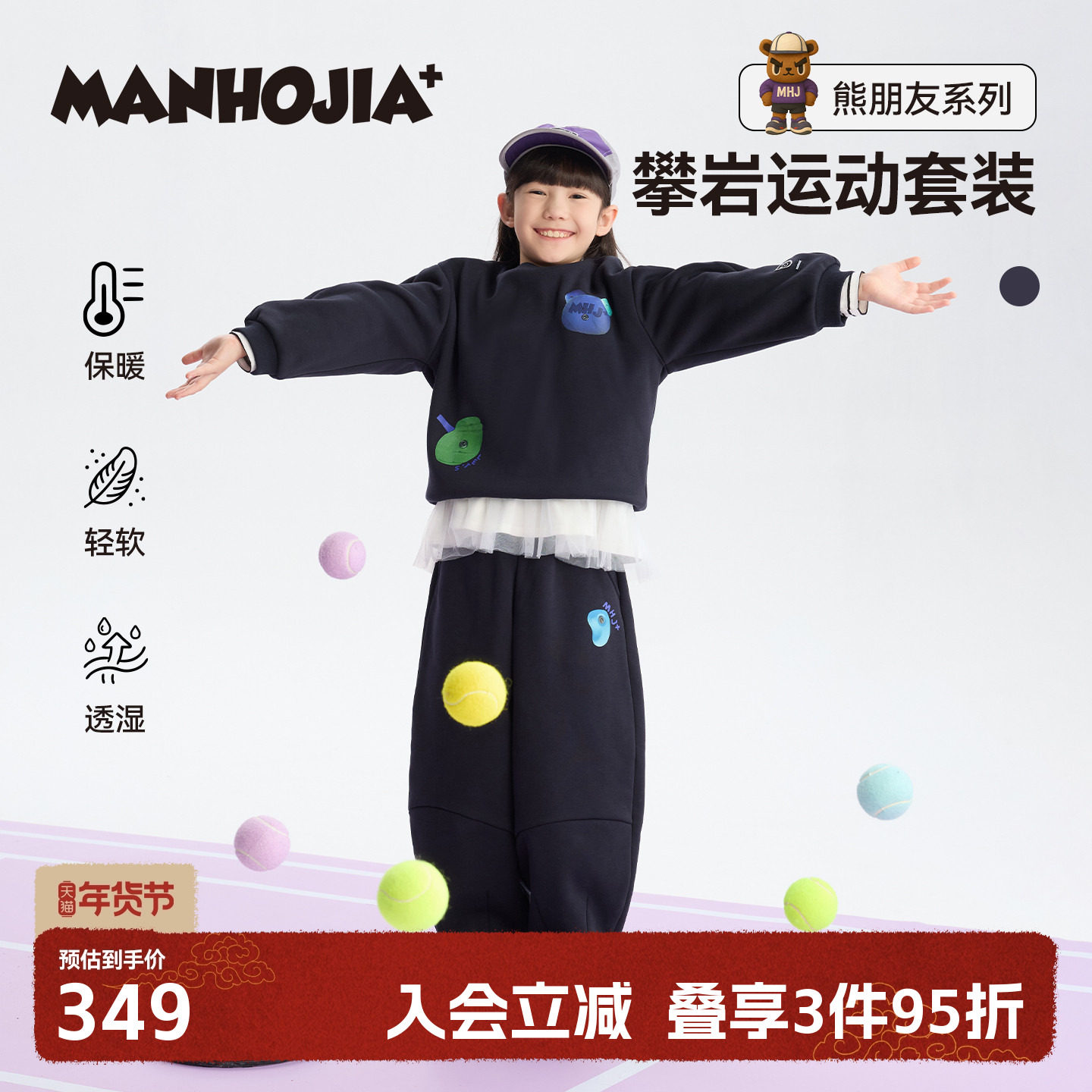 漫画家【攀岩印花套装】儿童卫衣冬新品保暖亲肤加绒印花卫衣套装