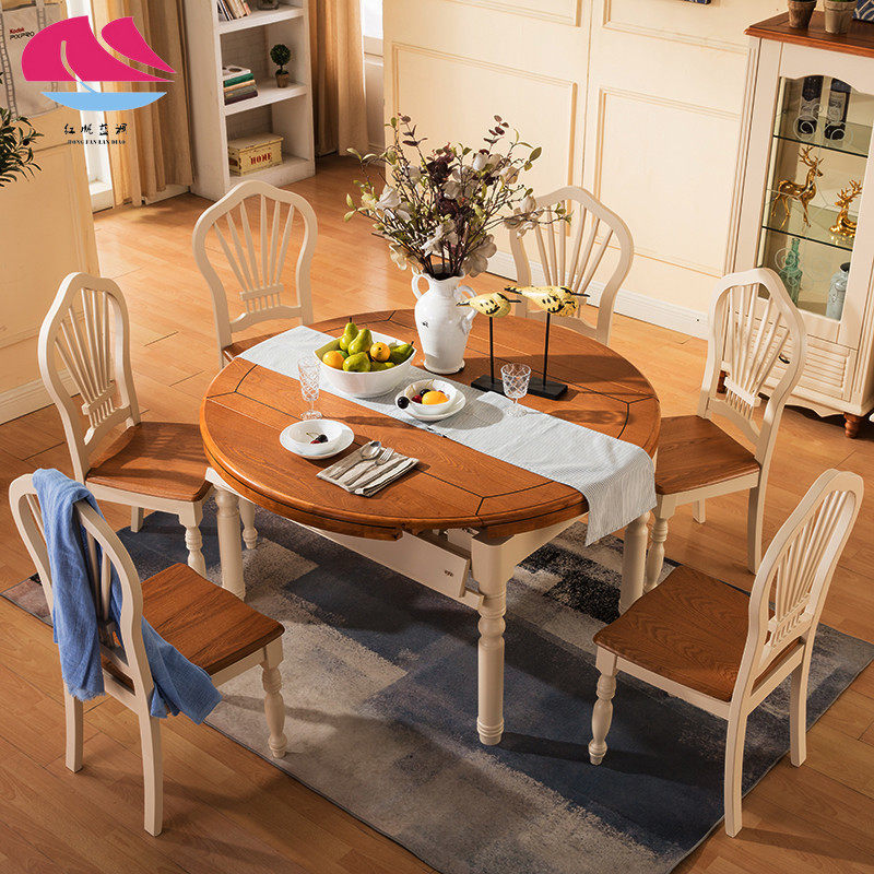 地中海餐桌椅组合实木一桌六椅田园家用美式折叠餐桌伸缩圆形饭桌