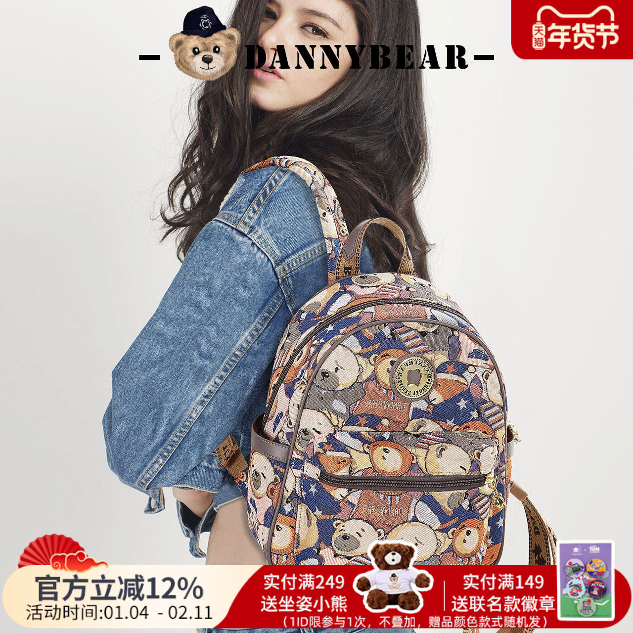 丹尼熊背包双肩包女包学生书包日常通勤百搭休闲布包DKB0115159