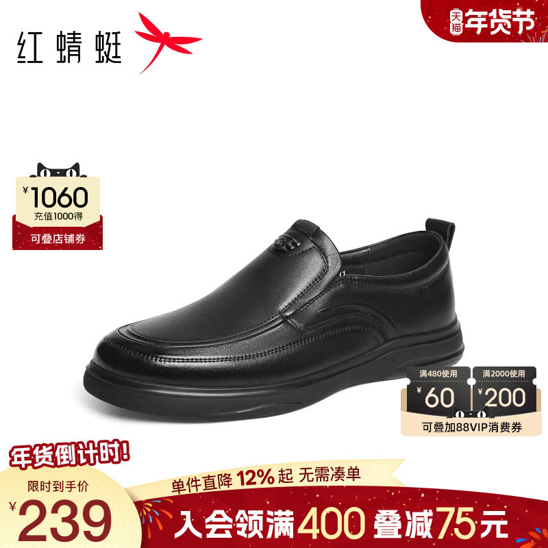 红蜻蜓休闲皮鞋2025春秋新款男鞋商务软底男士皮鞋平底通勤鞋子男