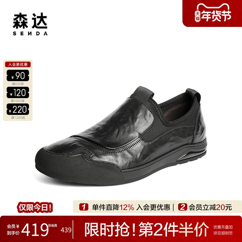 森达休闲皮鞋男2025秋新商场同款简约舒适平底头层牛皮鞋2BD02CM5