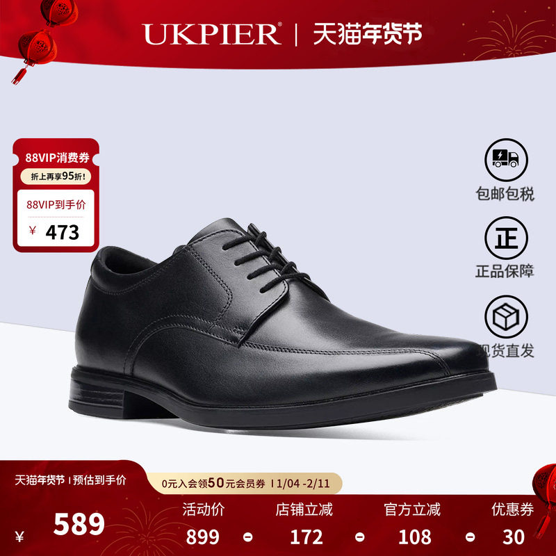 clarks其乐男鞋秋冬新款平底系带商务正装皮鞋德比鞋Howard Over