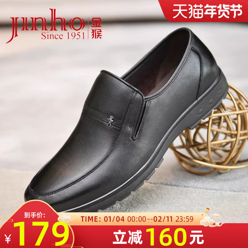 金猴皮鞋男春季真皮黑色套脚商务休闲平底柔软男鞋中老年爸爸鞋男