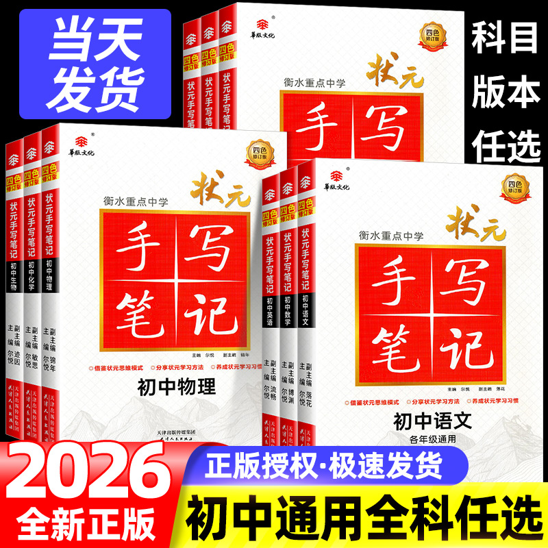 【新华文轩】 2026版衡水重点中学状元手写笔记初中数学历史地理物理生物化学语文政治英语四色升级七7八8九年级9初中中考复习资料