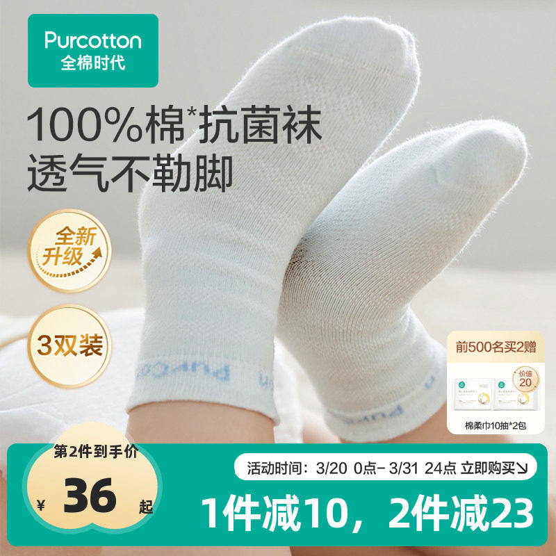 全棉时代婴儿袜子儿童袜宝宝袜子纯棉新生儿男女童白色透气中筒袜