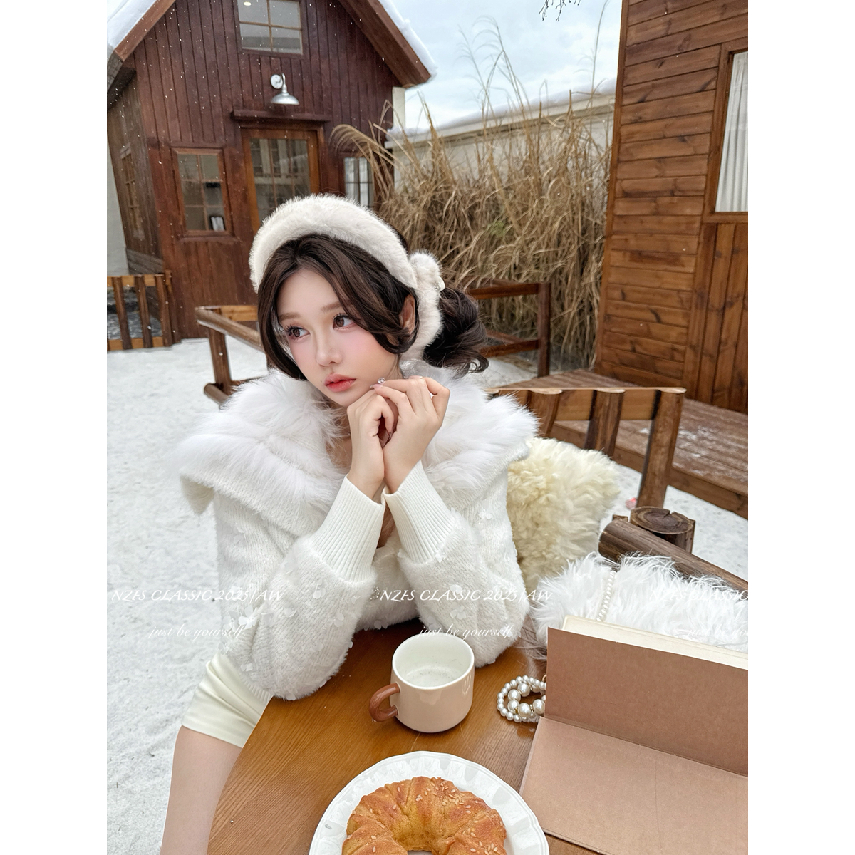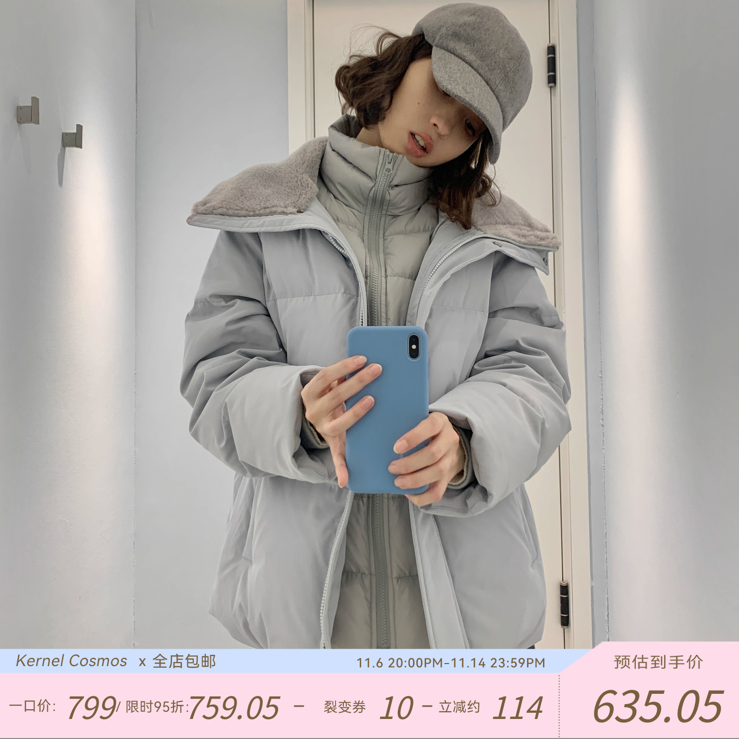 11/11 10AM 徐琳「初雪约定」大廓形90白鸭绒狐狸毛毛领羽绒服