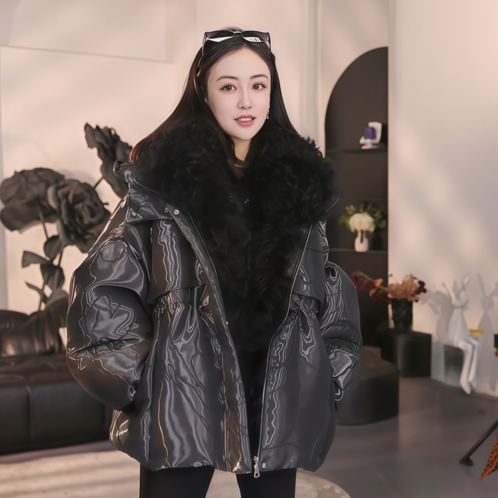 百搭气质环保毛毛大翻领外套女2025冬季新款拉链羽绒服保暖夹克