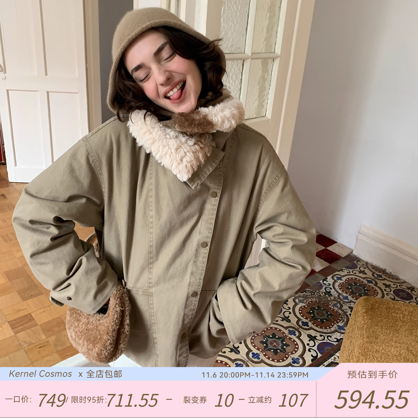 KERNEL COSMOS蒙特堡山谷 奶牛毛毛大翻领加厚工装派克羽绒服外套
