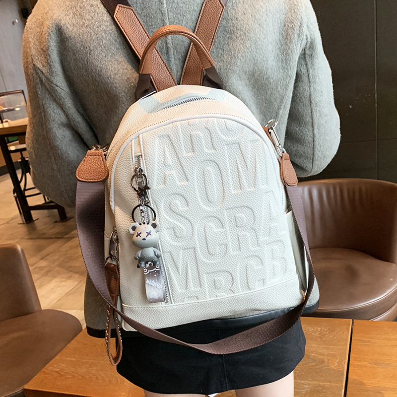 上班族双肩包女高级感2023新款字母压花休闲通勤三用女背包多功能