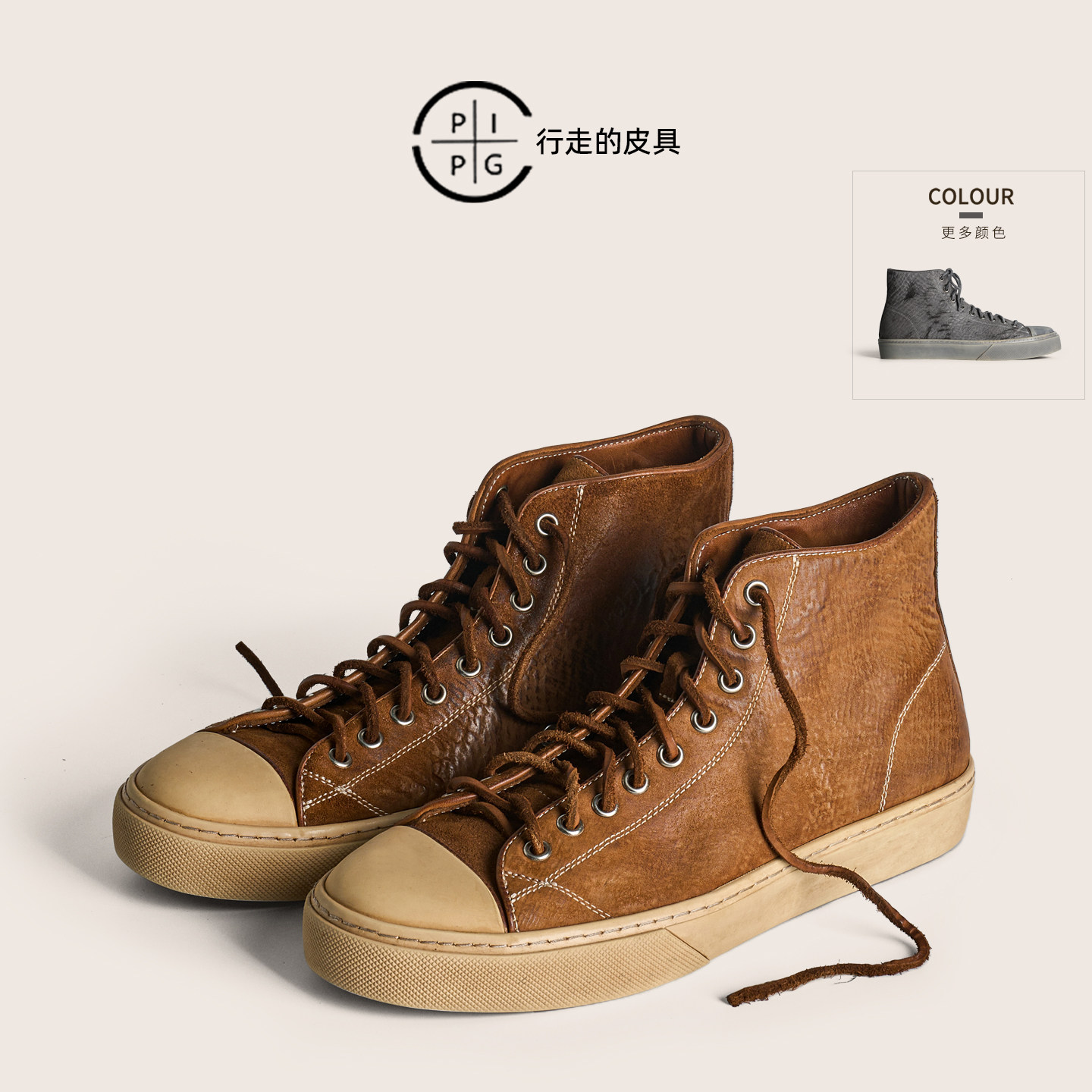PIPG男女鞋小众原创复古厚底运动休闲板鞋做旧擦色牛皮真皮手工鞋