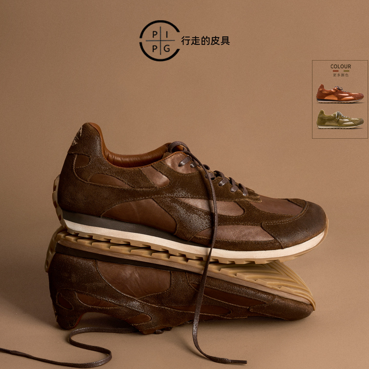 PIPG男女鞋原创厚底手工真皮鞋透气复古运动休闲板鞋做旧擦色马皮